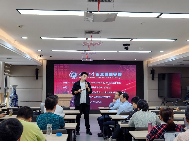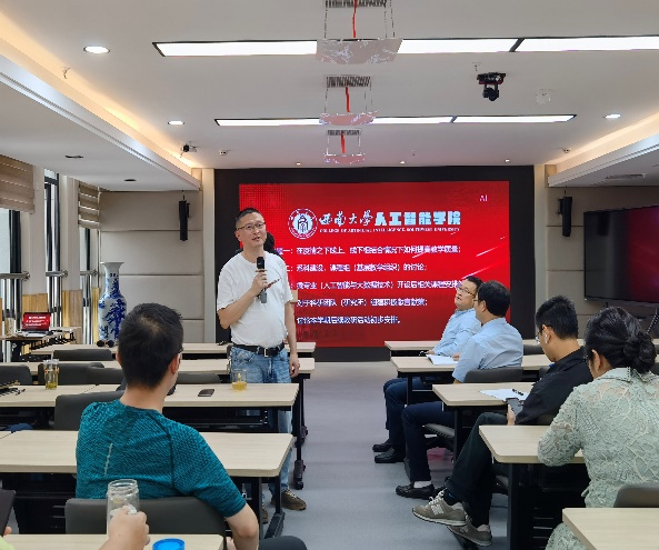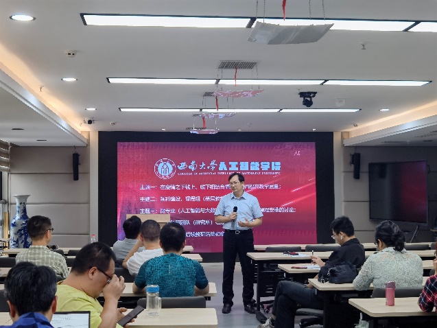 首先,陈枫主任介绍了本次教研活动相关主题安排,并就疫情当下师生最为关心和密切关注的线上教学这一主题进行深入探讨。袁建军老师、李生林老师等就本学期线上授课情况提出了自己的宝贵经验和新颖思路与各位老师分享,引发老师们的广泛讨论和思考。后续,陈枫主任组织就课程组、课程群等基层教学组织建设、公司微专业建设以及公司科研团队建设的思路和举措组织讨论,在座老师各抒己见,提出了许多有建设性、实践性的意见和建议,教学研讨活动现场气氛活跃。在研讨环节结束后,公司段书凯经理邀请浙江大学人工智能研究所所长吴飞教授,为公司作“《人工智能导论》课程建设之思考”的主题讲座,内容充实丰富,老师们受益良多。