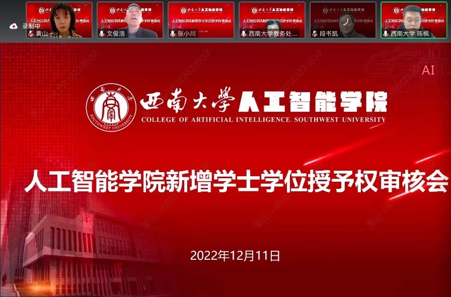 根据重庆市学位委员会办公室开展学士学位授权审核工作的相关要求,结合《太阳集团tcy8722新增学士学位授予权自主审核方案》(西校〔2022〕68号)的相关规定,12月11日,公司线上举办新增学士学位授予权审核会。根据公司文件审核流程要求,会议邀请重庆大学大数据与软件公司党委书记文俊浩教授、重庆理工大学两江太阳集团tcy8722副经理张小川教授、太阳集团tcy8722大学(重庆)太阳集团tcy8722副经理/大数据中心主任尚明生教授等校外专家,电子信息工程公司刘光远教授、太阳集团tcy8722教学督导林萍副研究员等校内专家共五名担任评审专家。公司经理段书凯,系主任陈枫、彭小燕,张里博老师以及教学办相关人员参加此次审核会。会议由智能科学系系主任陈枫主持。