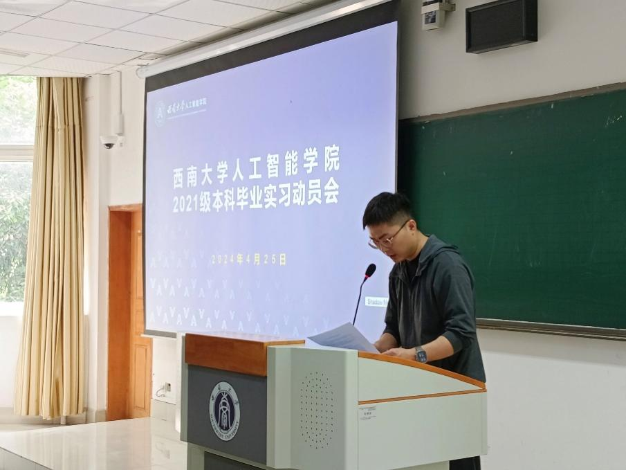 为了向即将步入实习岗位的同学们提供明确的指导和支持,确保员工在实习期间能够有所收获并为未来职业发展奠定基础,公司于2024年4月25日在28教105教室召开2021级毕业实习动员会。公司党委副书记张维薇,公司副经理陈枫,学工办主任张放,教学办主任黄山,公司人工智能系系主任彭小燕、实验中心主任闫嘉、21级班主任代表钟明洋老师、实习单位王伟杰、张鑫老师以及2021级全体本科生出席了本次动员会,会议由学工办主任张放老师主持。