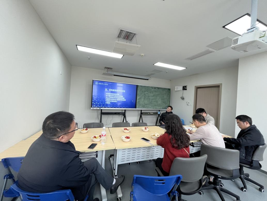 在研讨会上,智能科学系主任张里博老师首先以“以本为本,以生为本,全面推进卓越人才培养”为主题,紧密围绕全国教育会议精神,深入学习全国教育大会精神,从教育家精神的实践和人工智能学科专业优化等方面对本科公司产品思想进行了深刻阐述。之后,与会教师就公司本科教学及培养方案相关议题展开了热烈讨论,并对教学和培养方案中存在的问题提出了一系列建设性意见和改进措施。