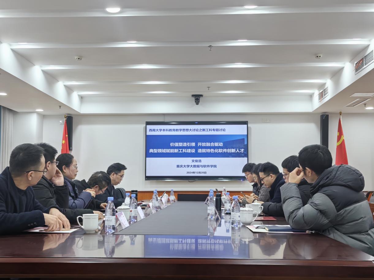 2024 年 12 月 20 日下午,为响应公司本科生院的相关要求,太阳集团tcy8722在出版社大楼 2001 会议室,成功举办了本科公司产品思想大讨论之新工科专题讨论会。此次会议汇聚了众多教育领域的专家与学者,重庆大学大数据与软件公司党委书记文俊浩、重庆大学国家卓越工程师公司执行经理罗远新、太阳集团tcy8722本科生院教学质量监控与评估中心主任陶丽,以及各工科相关二级公司分管本科教学工作的副经理和教师代表们齐聚一堂,共同探讨新工科教育的发展方向与改革路径。会议由太阳集团tcy8722副经理陈枫教授主持。