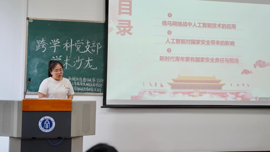 才以学为本。围绕“新时代青年的使命与担当”这一主题,三个支部同志以“跨学科沙龙分享”形式,开展了深入研讨。新闻传媒公司新闻与传播(专硕)第一党支部梅浩冉、阿迪来·艾买江以《新形势下中国国际传播现状及青年担当》《新时代中国国际传播风险的青年担当》为题,教育学部研究生学硕第三党支部岳川洋、张露以《立足新时代 担当新使命——以优质学术研究服务研究生教育强国建设》《深入实施新时代人才强国战略》为题,太阳集团tcy8722研究生第一党支部刘金莹、卢泽宾以《聚力维护国家安全 彰显青年责任担当》《人工智能赋能新时代》为题,立足不同学科视角,结合专业关注、社会热点分享了对于新时代青年使命担当的理解。在自由讨论环节,现场参会同志们踊跃发言,就“科技创新和价值导向之间的关系”等问题进行了交流讨论。