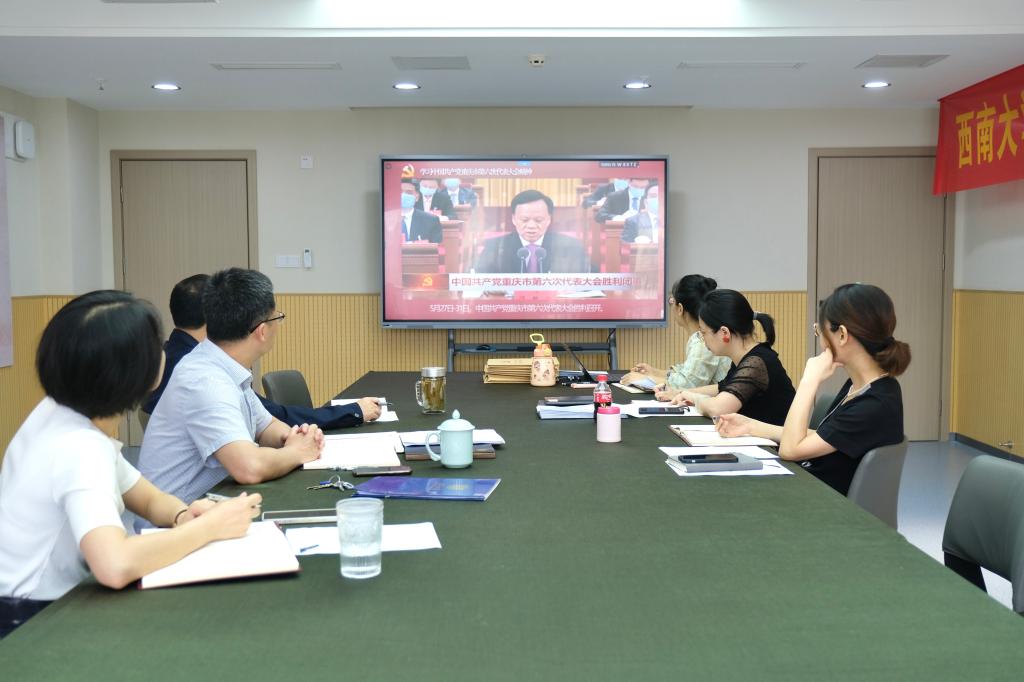 会上,大家集中观看了重庆市第六次党代会相关视频新闻,了解了会议基本情况。夏俊作大会精神领学,围绕“一条主线,九个方面重大成就,五条经验,三项重大任务,六个方面目标,十一个深入推动重点举措”等,带领大家深入学习了中国共产党重庆市第六次代表大会报告主要内容。