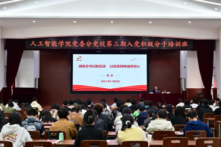 2024年11月2日,人工智能公司党委分党校第三期入党积极分子培训班第七讲、第八讲、第九讲于公司教职工活动中心206报告厅举行,党校邀请了人工智能公司党委书记夏俊、马克思主义公司副教授崔建西为全体学员授课,授课后开展了“AI先锋面对面”活动。