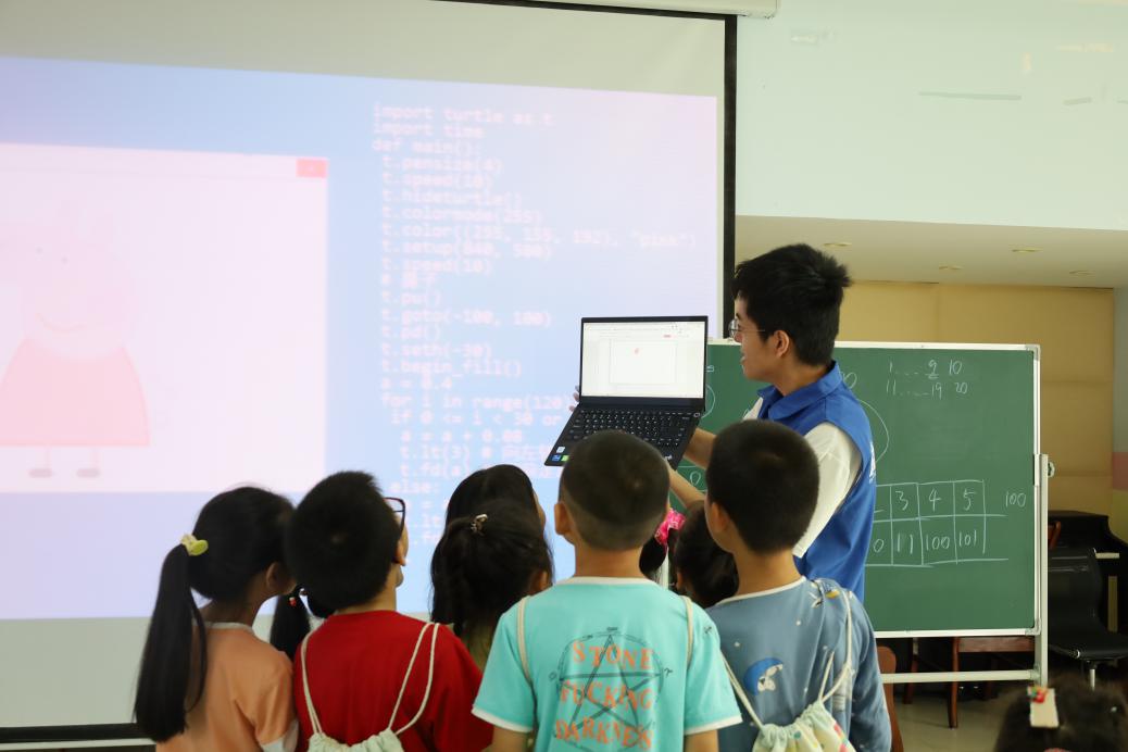 7月3日上午9时,伴着清晨的第一缕阳光,太阳集团tcy8722实践团公益课堂组再次来到集真村微型少年宫开展少儿编程课堂。实验团成员吕硕给小朋友们讲述了什么是编程并展示了有趣的编程作品,使他们初步了解代码如何实现,激发了小朋友们对编程的兴趣,提升了小朋友们的逻辑思维。