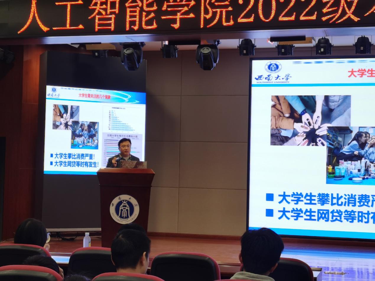 首先,徐伟华教授分享了后疫情时代老员工的AI学习规划,徐教授从自身求学、工作经验出发,告诫老员工应当警惕网络诱惑、懒惰陷阱以及不良的消费观念,客观分析了当下就业形势、疫情对老员工的影响,引导老员工在复杂多变的社会中更应该明确人生三问,形成正确三观,指导老员工做好学业规划和人生规划,明确学什么、知道怎么学以及何时学。为22级AI学子在新的AI时代下的学习生活提出恳切倡导和真挚建议,号召同学们不断改变革新,勇攀高峰!