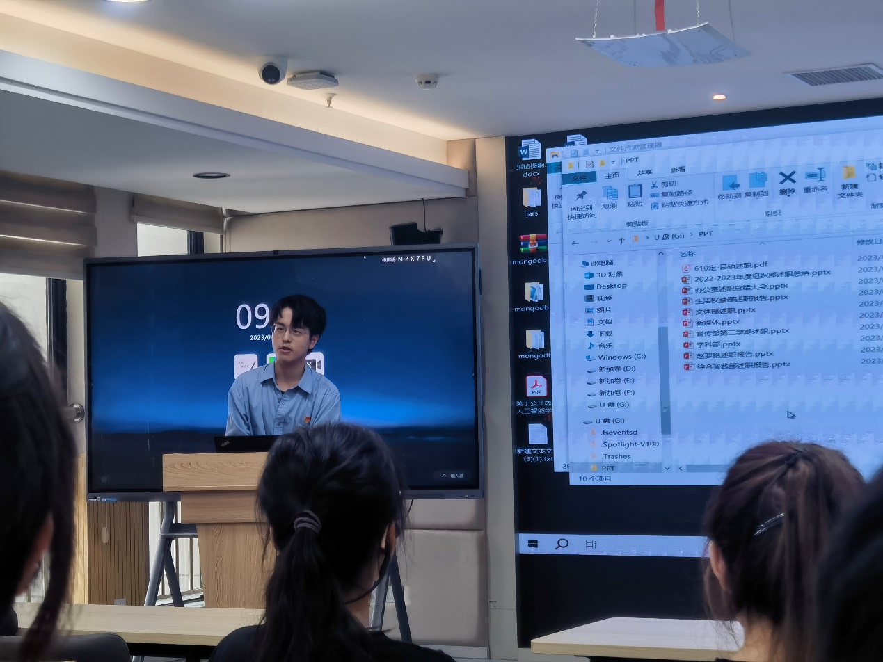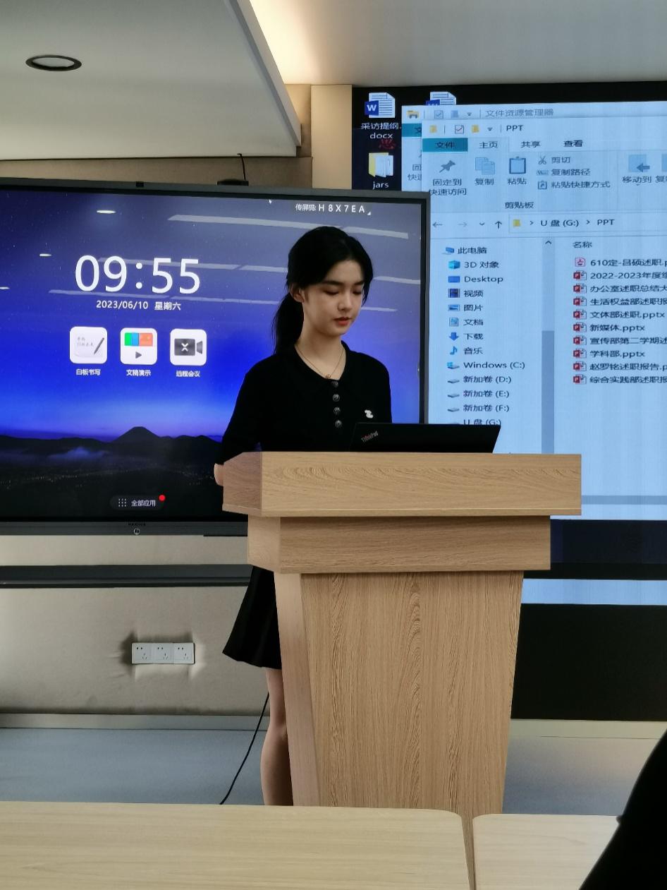 干事代表宫雷皓表示过去一年在办公室这一温馨、有干劲的部门工作,切切实实的锻炼了其自身的沟通协作能力、活动策划能力与随机应变能力。同时也认识到,作为团委员工会的一员,应当保持真诚服务同学的心、良好的工作素质以及扎实的工作作风。他表示,在未来不论是继续坚守岗位还是投身于学习中,本学年的工作都将是大家个人成长中绚烂夺目的一页。