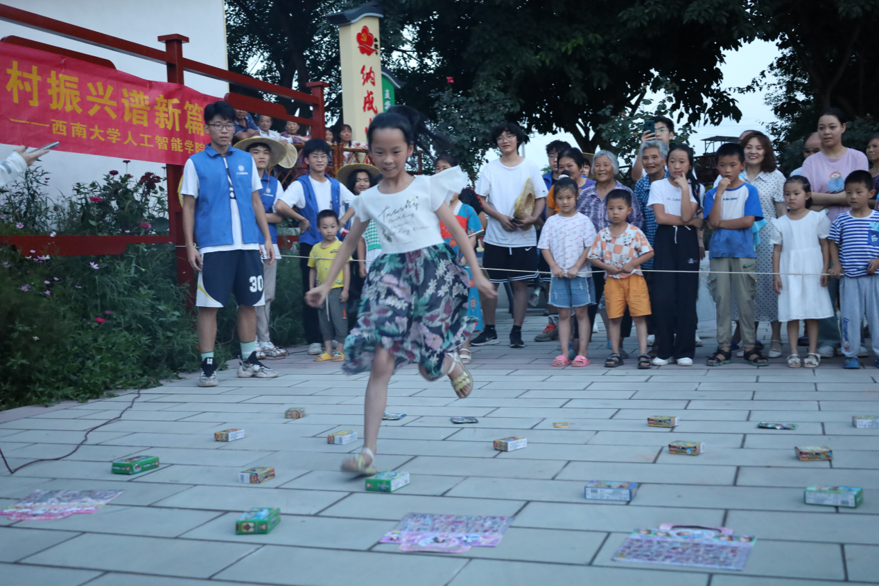 晚上19时,实践团成员在纳成小院举办了套圈活动和红色主题歌会,以歌曲的形式挖掘深藏的红色记忆,村民们聚集在此,现场氛围欢乐温馨。紧接着,实践团成员号召村民共唱红歌,围观村民们从激昂的歌声中表达出对先烈的敬意,实践团成员们也将饱满的热情投身于社会实践之中。至此,第二天的三下乡实践活动到此结束。