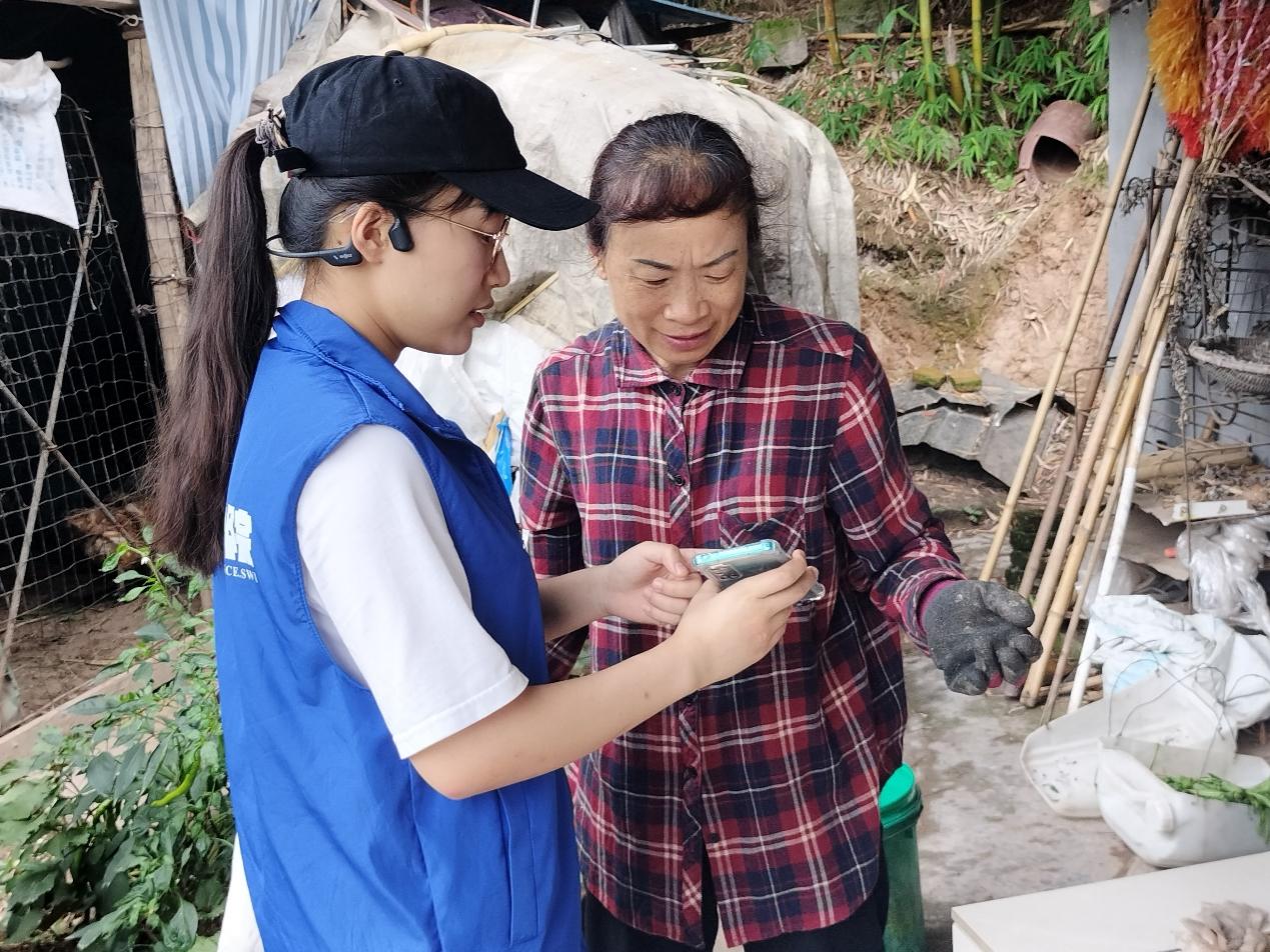 在另一边的万宝村,实践团成员开展了旧照片的收集工作,使用AI修复技术将村民们的旧照片修复成有色彩、无破损的新照片,并对万宝村村民使用微信小程序“小院家”的使用情况进行了调研。