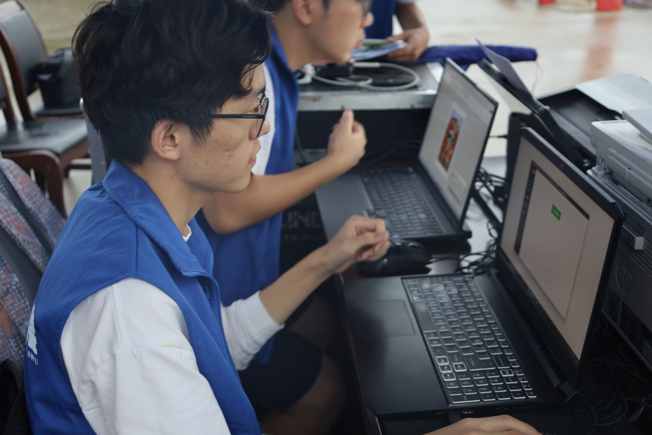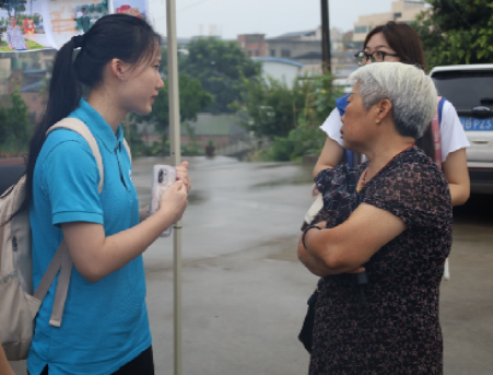实践团众人配合默契,各自分工。行动组在收集照片的同时参与庆祝活动小党旗分发工作,并与活动现场的村民深入交流,了解到他们平时的日常生活与当地部分政策的落实情况,实践团成员刘世会为他们耐心解答疑问,帮助保存电子版相片。