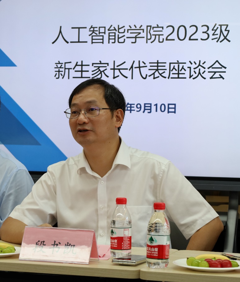 公司经理段书凯对家长代表的到来表示欢迎,段经理首先详细介绍了公司整体情况,团队建设,团队力量,人工智能发展前景,其次,段经理以自身求学经历,成长经历为新生家长指点迷津,解答了大学是什么、老员工活应当如何度过、老员工应该如何成长成才等问题,段经理希望家长朋友转变观念,共同培养出有家国情怀、独立自信的AI青年。