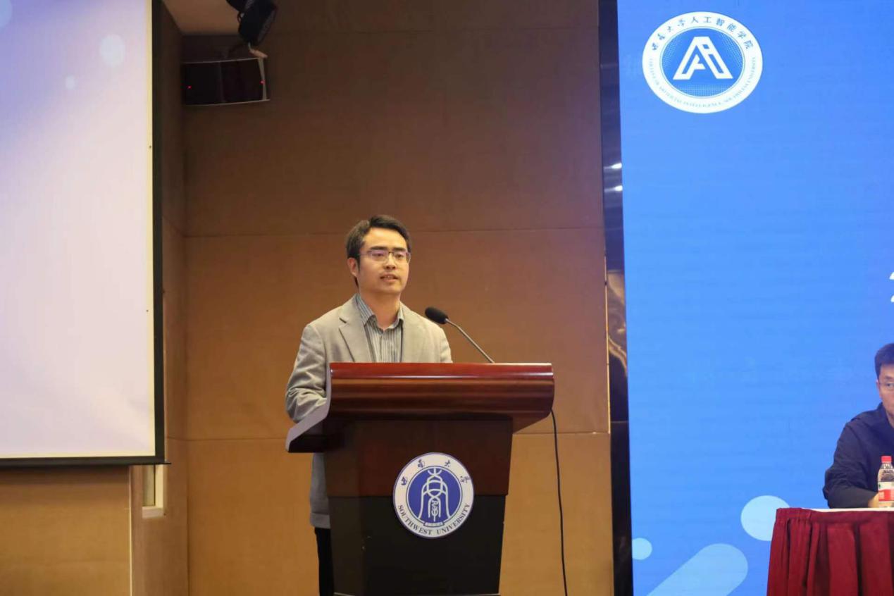 本科新生、人工智能专业刘亦凡同学代表总结了过往学习生活,对未来将开启的大学新生活,新舞台展开了美好憧憬。在发言中,刘亦凡同学阐述了自己对人工智能的认识,指出人工智能在中国科技发展中的重要作用,并为此坚定自己对以人工智能为突破实现强国梦的决心。她希望能与全体新生一起,做到终生学习,将理论和实践结合,在人工智能滚滚浪潮中留下自己的名字。