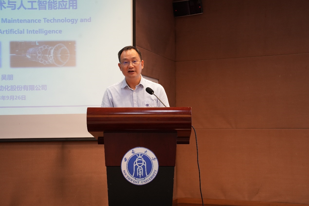 会议进行第二阶段,重庆川仪自动化股份有限公司党委书记、董事长吴朋先生为全体同学作新生前沿讲座。吴朋董事长以“预测性运维技术与人工智能应用”为题,向同学们介绍了作为一家前沿科技企业所需求的设备、人才及技术,为大家对人工智能的发展前景作出了具体的描绘,并向同学们寄予了美好的期望与祝愿。