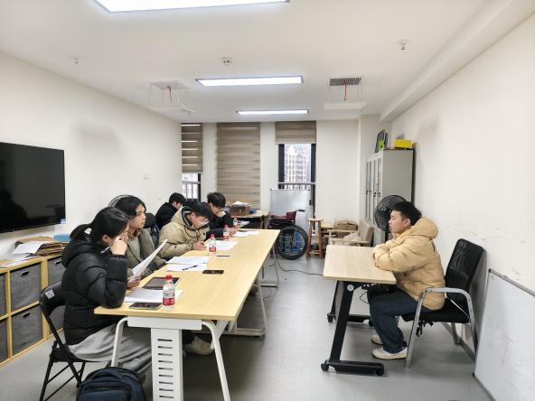 随后,活动进行分组进行实战演练,通过设置简历投递、自我介绍、双语考核、专业提问等环节为复试同学们模拟复试现场。同时请作为面试官的研究生同学们的复试表现进行点评反馈,并对同学们的简历、PPT等有关材料提出修改建议,有针对性地给出指导,确保模拟面试达到最佳效果。
