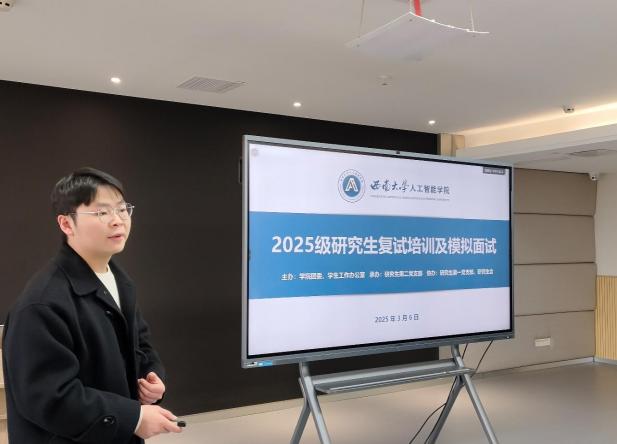 活动第一阶段,2023级硕士研究生吴付军同学作经验交流,他结合自身考研经历,从简历优化、高频问题应答技巧、现场沟通策略等方面进行分享,为同学们解疑答惑、明晰方向。紧接着,张里博老师代表公司表达了对本次活动的重视和支持,他强调同学们要全身心地投入到复试备考过程中,每一个知识点都是通向成功的基石,每一次模拟练习都是检验自身实力的宝贵机会,要以充分的准备在复试中展现自己最佳状态。