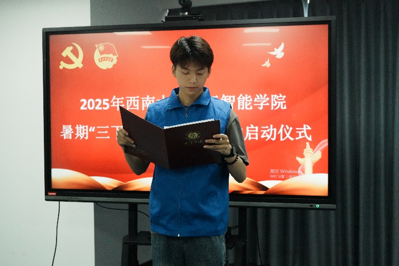 服务团成员、员工代表姜森钟发言,他表示青年员工应当积极响应党和国家号召,走进社会、投身乡村,发挥专业所长,以科技赋能生活,助力乡村振兴。