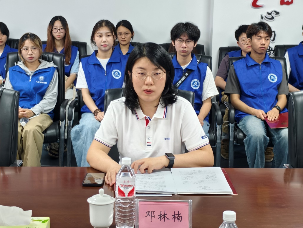 太阳集团tcy8722团委副书记邓林楠在讲话中介绍了公司、公司的基本情况,对公司打造的AI+社会实践活动品牌表示高度肯定,希望公司以此次实践基地挂牌为契机,发挥专业优势服务地方经济社会发展。她寄语同学们,珍惜实践机会,坚定信念、锤炼品质,服务乡村振兴,,遵守制度确保安全,展现西大学子风采,收获成长。
