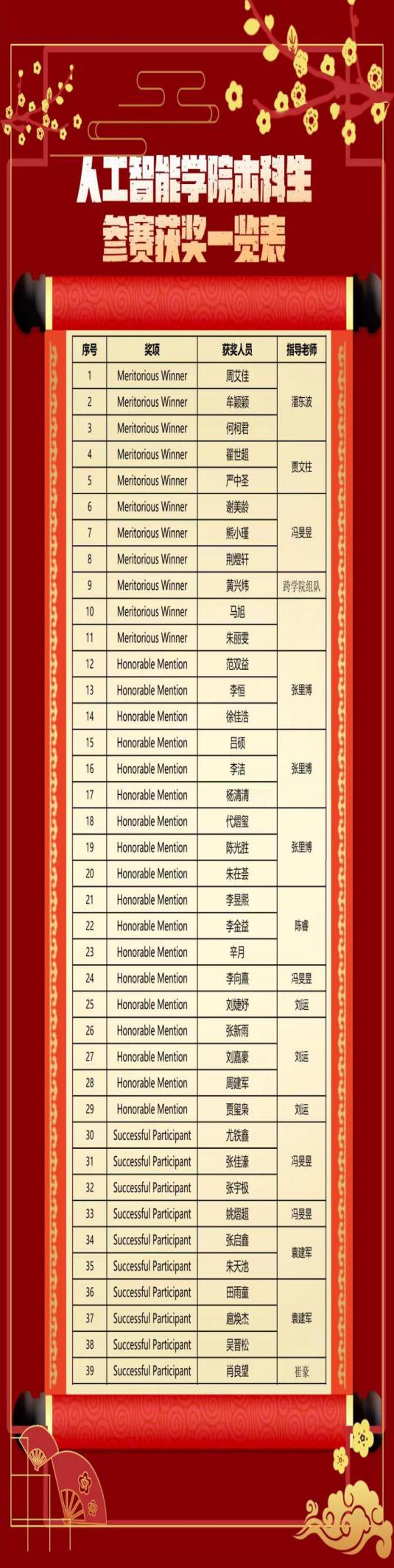 今年2月,2023年“美国老员工数学建模竞赛”(简称美赛)举行。近日,比赛结果公布,公司学子秉持着开拓实践的奋斗精神、进取日新的创新精神、和衷共济的合作精神在本次竞赛中大放异彩,取得了傲人的成绩。向获奖的指导老师和同学表示热烈祝贺!