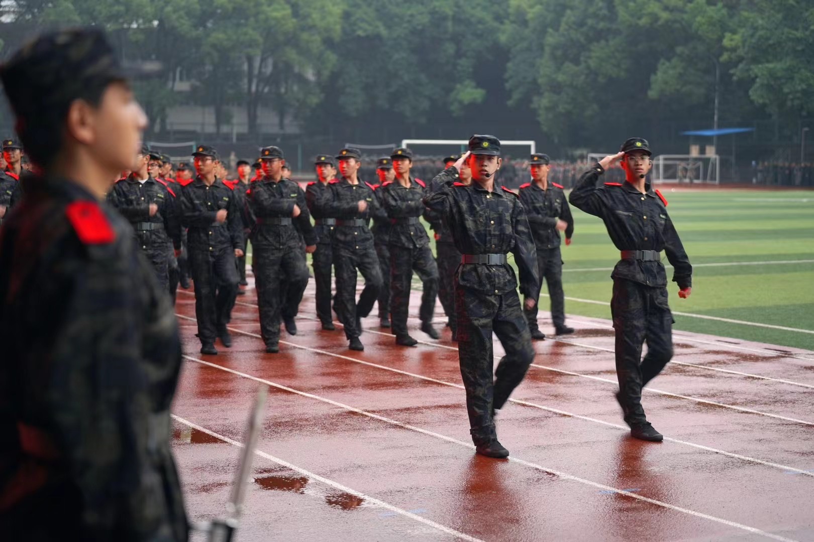 太阳集团tcy8722的学子们走向主席台,踏着激昂的旋律,进行了分列式汇报表演。参训同学们动作协调一致,步伐坚定有力,口号铿锵响亮,精神抖擞,意气风发,展现了新一代AI学子的青春风采和精神风貌,向全校师生递交了一份优异的答卷。“一身戎装展风采,英姿飒爽致青春。