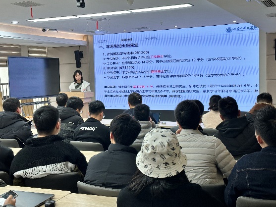 首先,彭小燕老师介绍了此次工作会的内容和目的。随后,李雪老师对研究生高质量培养关键环节具体要求进行了分享,对毕业工作流程及要点进行了说明,李翔老师对当前就业形势进行了分析并为应届毕业生提供了求职建议。最后,彭小燕老师对抓好人才培养质量相关要求及措施进行了强调。