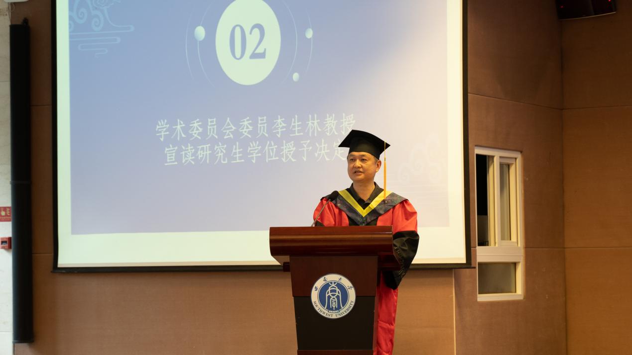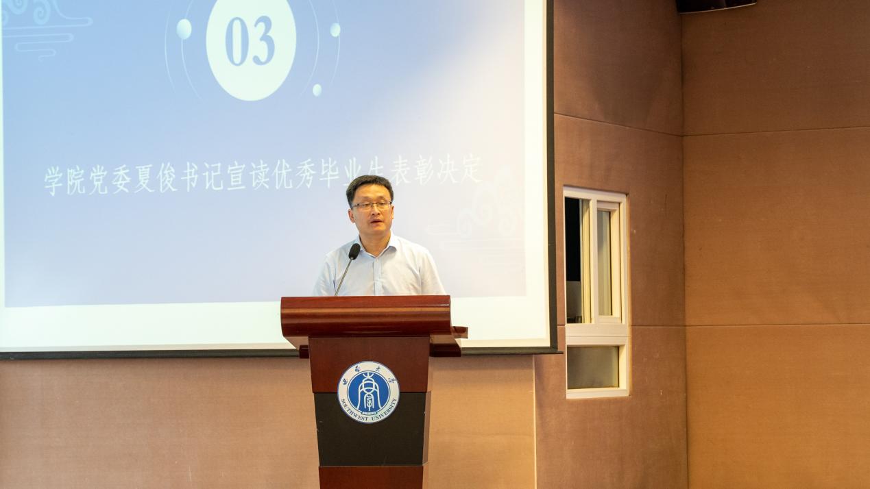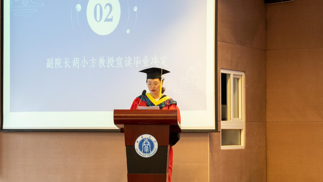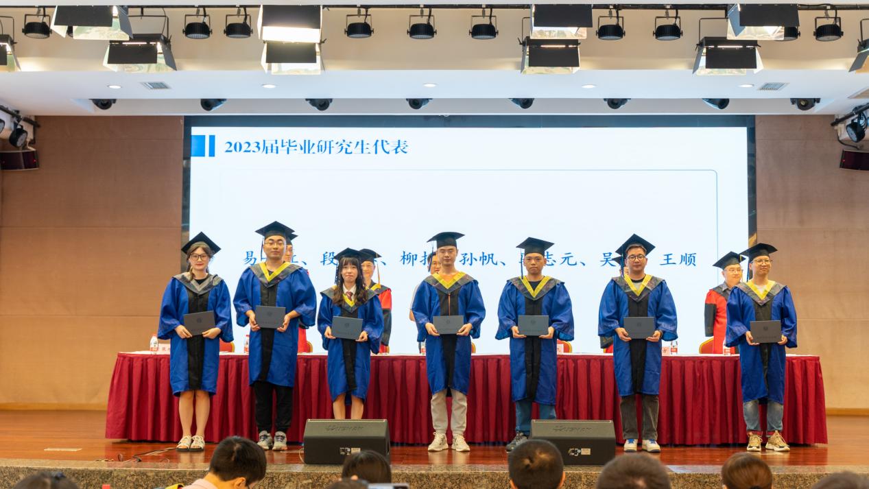 仪式上,党委书记夏俊宣读优秀毕业生表彰决定,副经理胡小方宣读毕业决定,学术委员会委员李生林教授宣读学位授予决定。