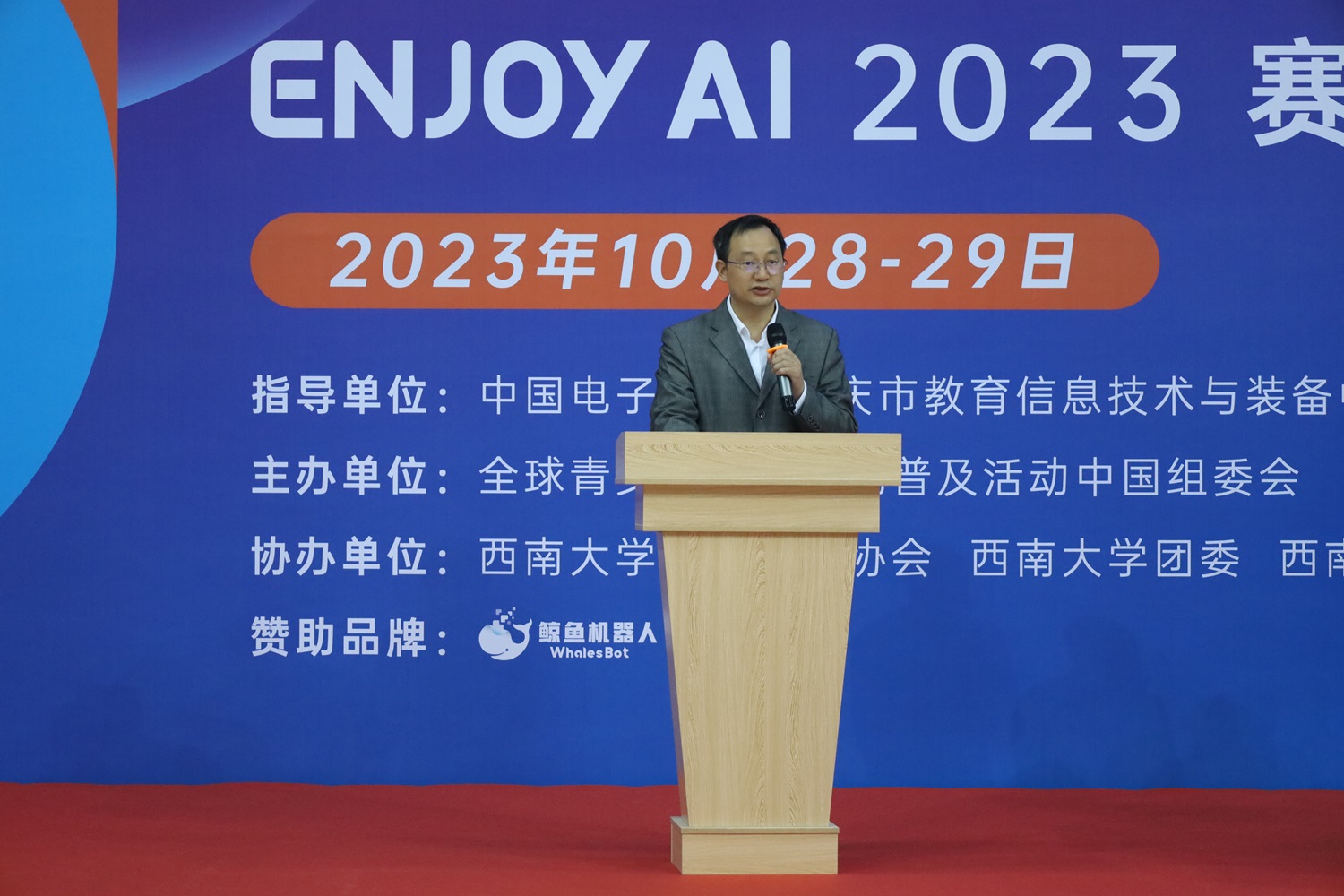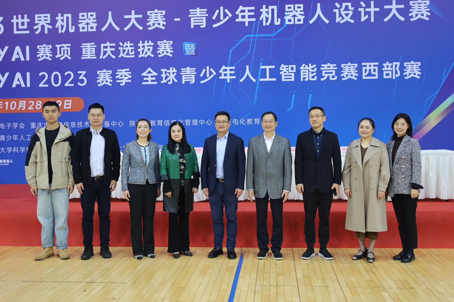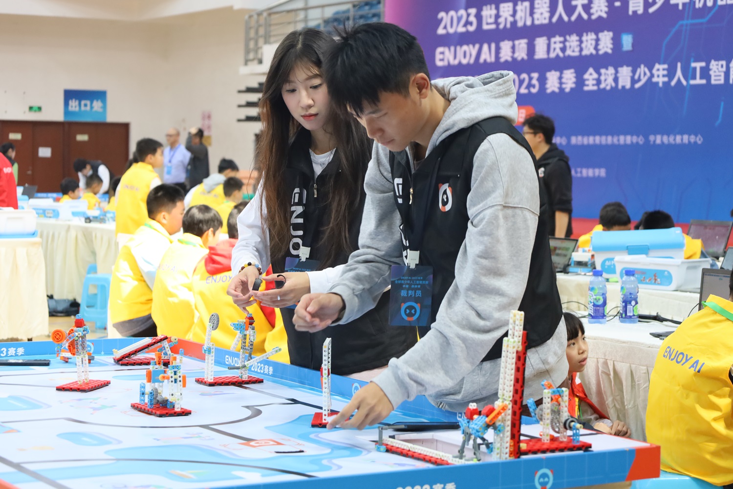 10月28日—29日,ENJOY AI 2023赛季全球青少年人工智能竞赛中国西部赛暨2023世界机器人大赛-青少年机器人设计大赛ENJOY AI赛项重庆选拔赛在公司成功举行。科技处副处长、校科协主任李雪梅,校团委副书记李立,人工智能公司党委书记夏俊,经理、党委副书记段书凯,重庆市教育信息技术与装备中心副主任钟苇笛,全球青少年人工智能普及活动ENJOY AI 中国区副主席王莹,鲸鱼机器人科技有限公司董事长兼CEO费旭锋出席开幕式。赛事由全球青少年人工智能普及活动中国组委会主办,太阳集团tcy8722、校科协、校团委协办。