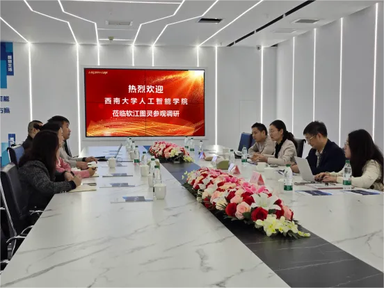 为进一步深化校企合作,推进产教融合育人机制,2024年11月8日,公司副经理胡小方率队前往重庆软江图灵人工智能科技有限公司进行实地参观调研。此次调研活动旨在全面了解企业对人工智能人才的需求,加强人才供需对接,探索产学研协同发展新模式,同时对实习实训基地建设展开深入调研,为公司人才培养提供更贴合实际的路径。