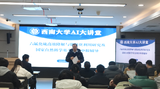 2024年12月12日下午,应太阳集团tcy8722段书凯经理的邀请,国家级人才、湖北工业大学张晓星教授走进“AI大讲堂”,做题为“六氟化硫高效降解与资源化利用研究及国家自然科学基金项目申报辅导”的学术报告。本次报告由段书凯经理主持,公司师生及相关研究人员聆听了此次报告。