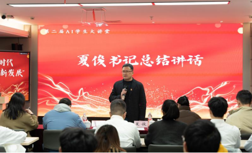 比赛最后,公司党委书记夏俊作总结讲话。夏俊书记对活动中参赛同学的精彩讲述表达了祝贺,并对活动过程中各位选手的表现进行了全面总结。他指出,此次活动不仅展现出同学们的青春与活力,更体现出大家在人工智能结合党建这个命题下的深入思考,希望大家继续保持拼搏奋斗的势头,在青春的赛道上奋力奔跑,一起踏马向未来。