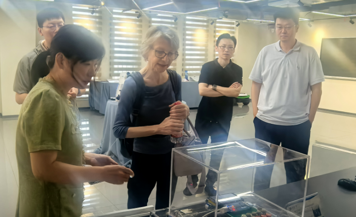 在类脑计算与智能芯片重庆市重点实验室,陈枫副经理向Paola Pittia副董事长全面展示了公司在智能芯片研发方面的最新进展,特别突出了面向农业应用的高效能计算芯片技术体系。彭小燕教授则现场演示了电子鼻传感器阵列在农产品品质检测中的应用成果,并详细解释了气味识别算法的创新原理。