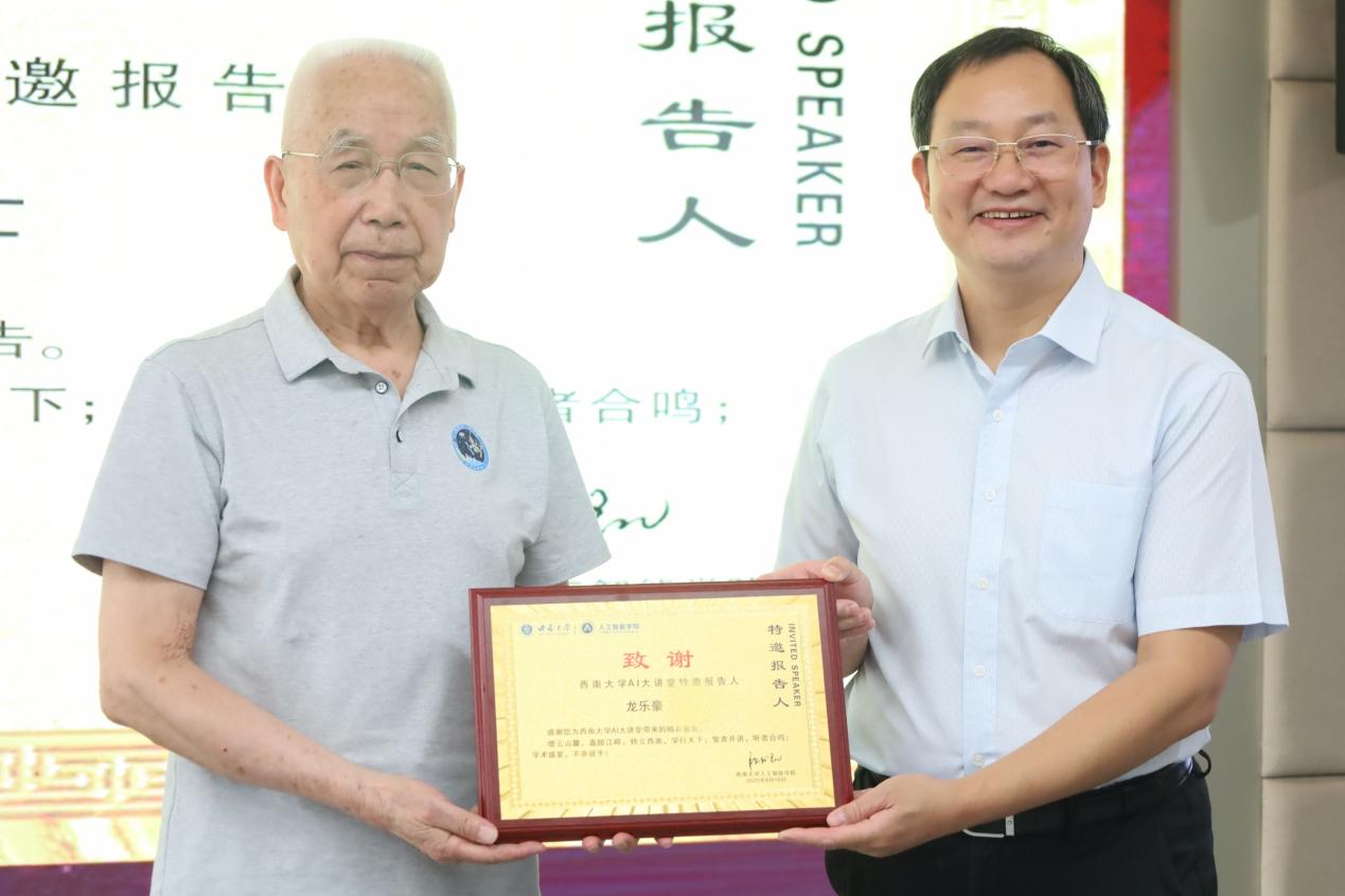 讲座结束后,段书凯经理代表公司为专家龙乐豪颁发了“太阳集团tcy8722AI大讲堂特邀报告人”证书,并对他的精彩分享表示衷心的感谢。